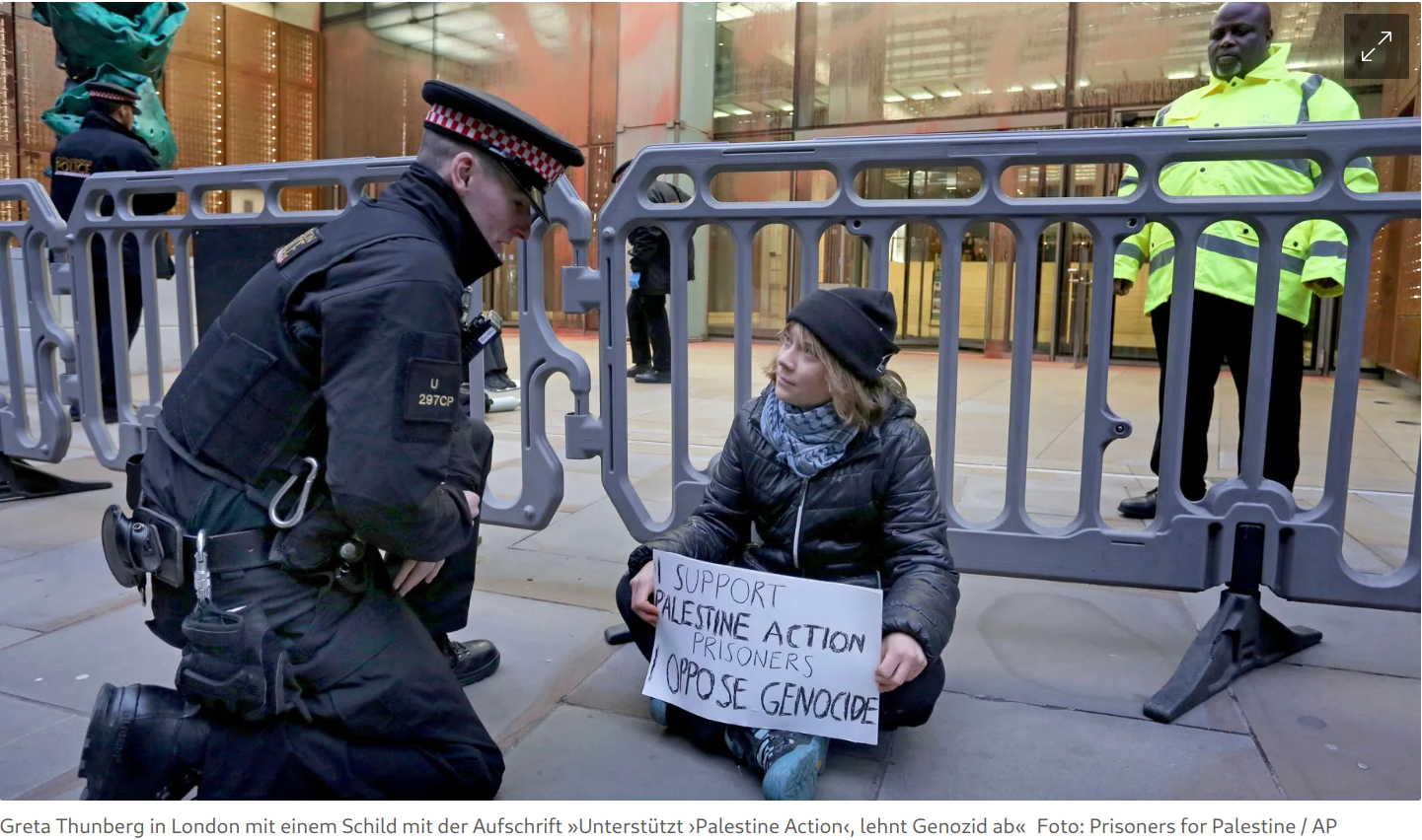 Das ist etwas ganz anderes als das, was wirklich ausgesagt wird: Greta Thunberg unterstützt Häftlinge, die einer Organisation namens "Palestine Action" angehören, und sie lehnt Volkermord ab.